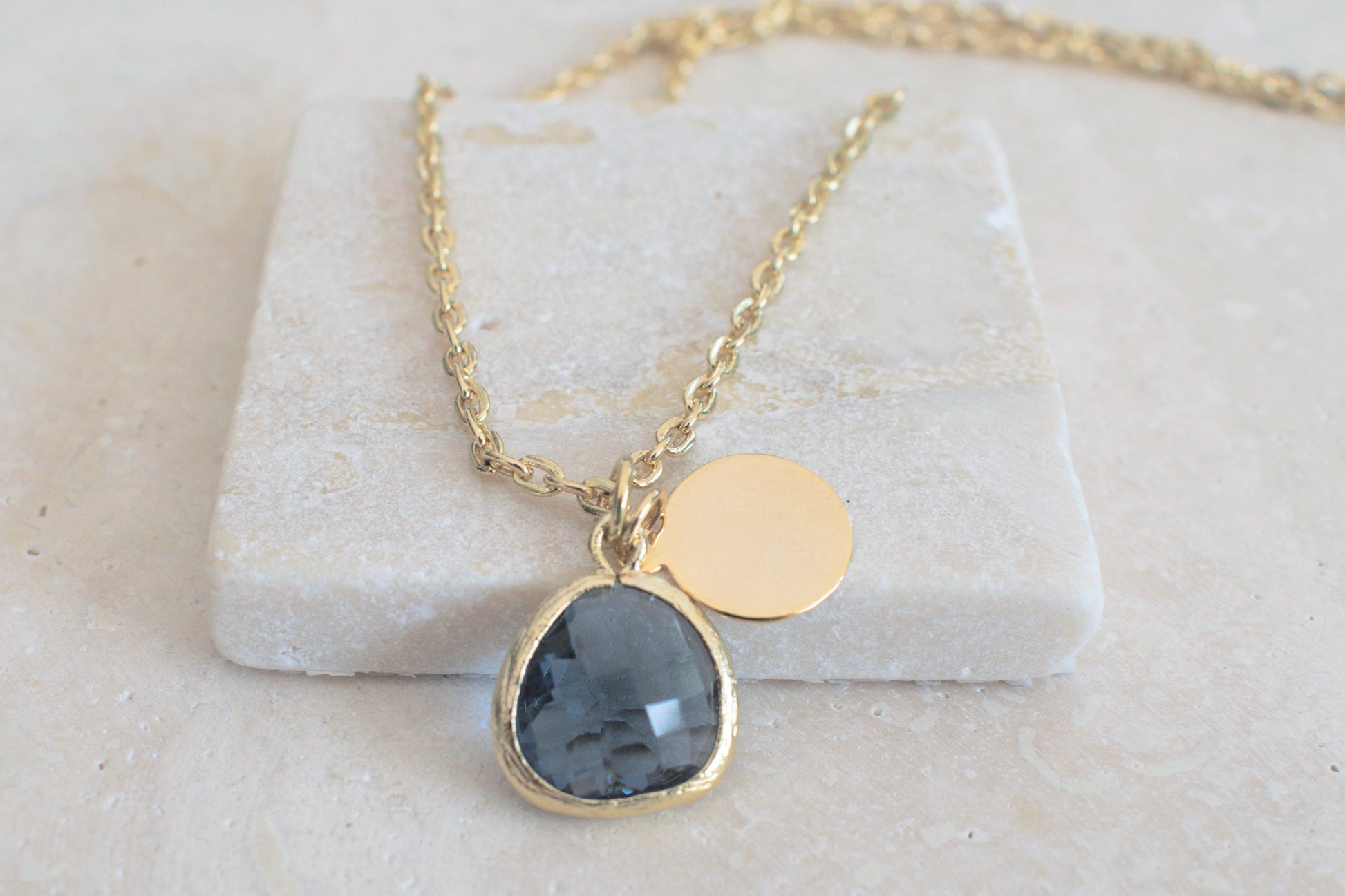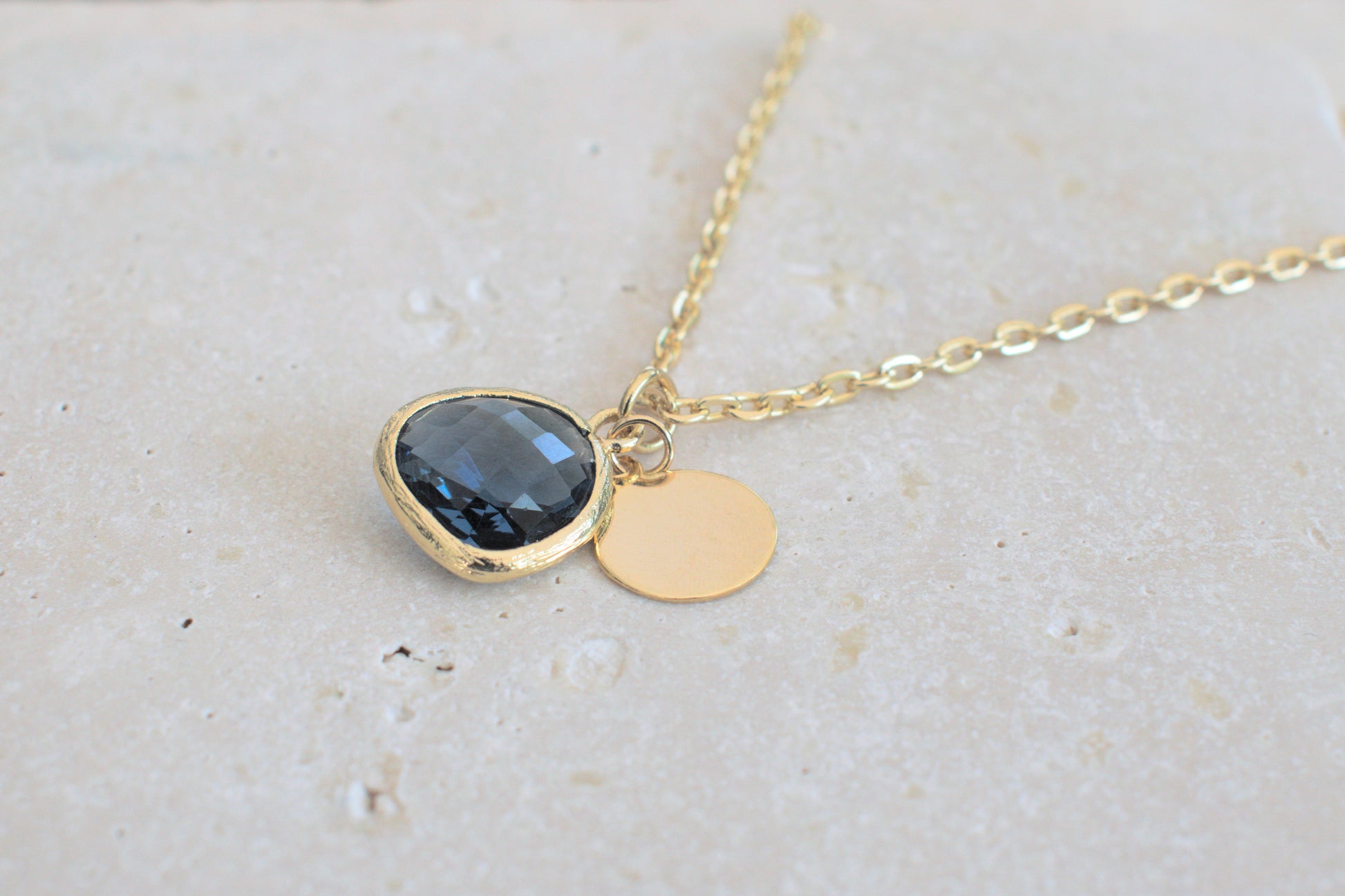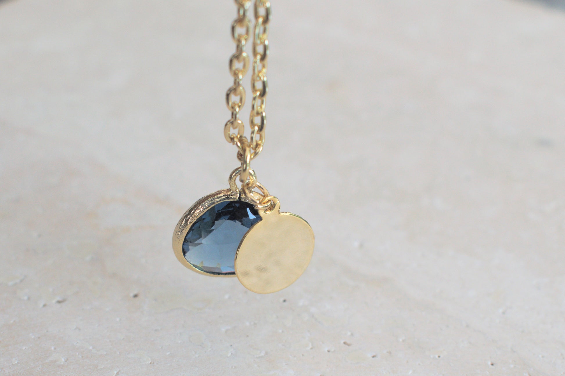 Damenkette in gold mit einem blauen Anhänger und einem minimalistischen runden Anhänger in gold