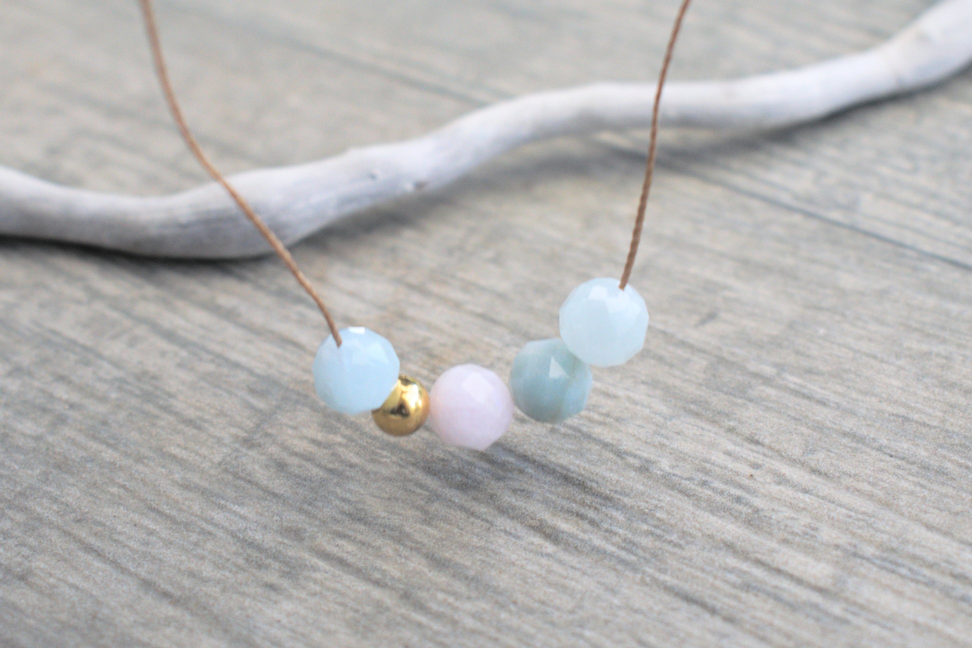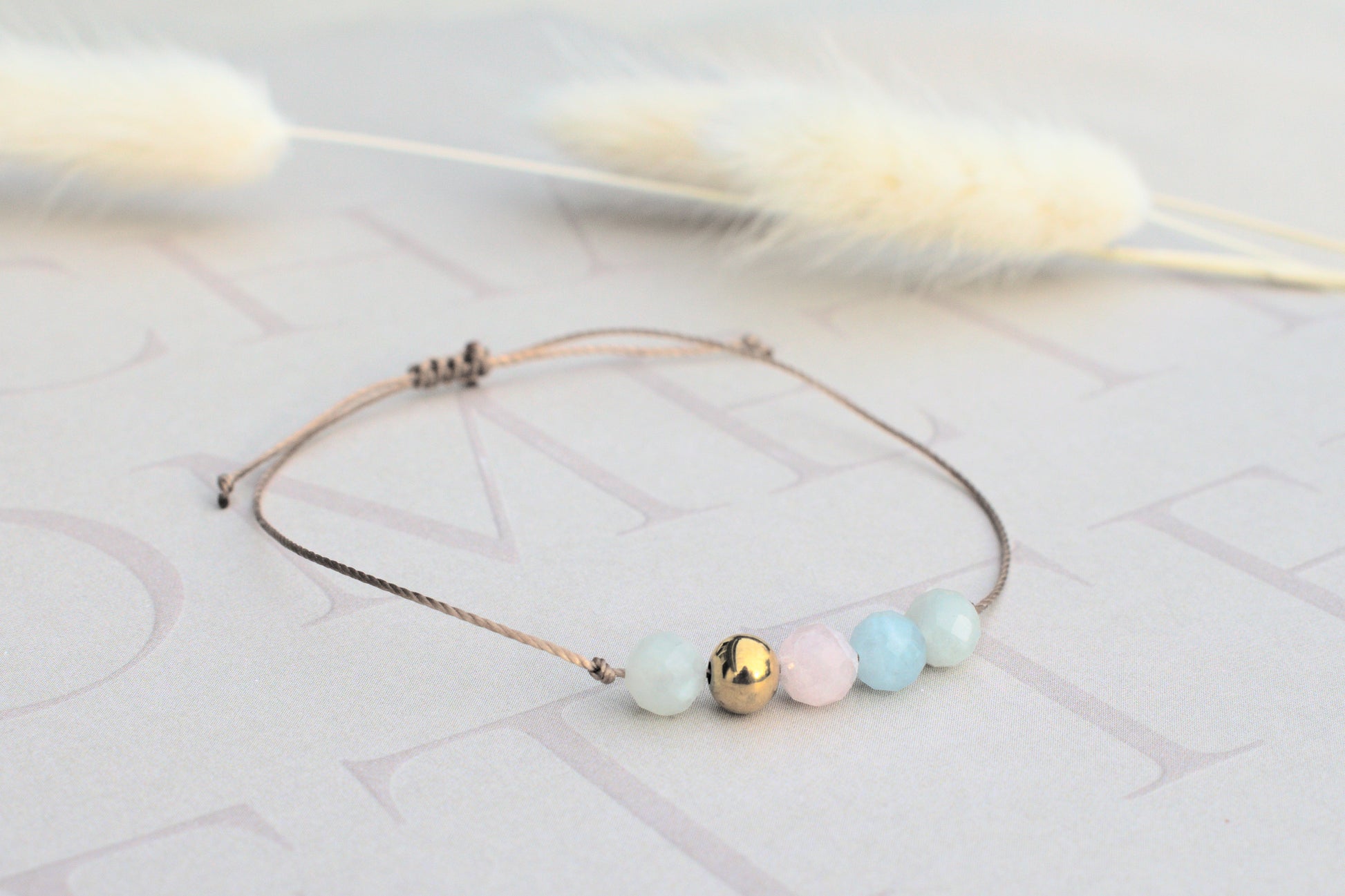 Freundschaftsarmband mit echten bunten Morganit Edelsteinen und einer eleganten goldenen Perle