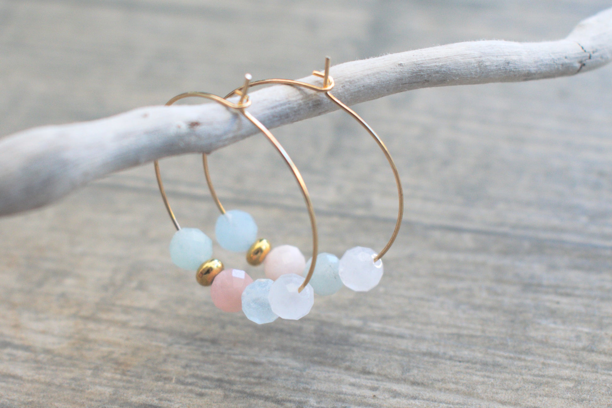 Material: Edelstahl, 4 bunte Morganit Perlen, eine goldenen Edelstahlperle
