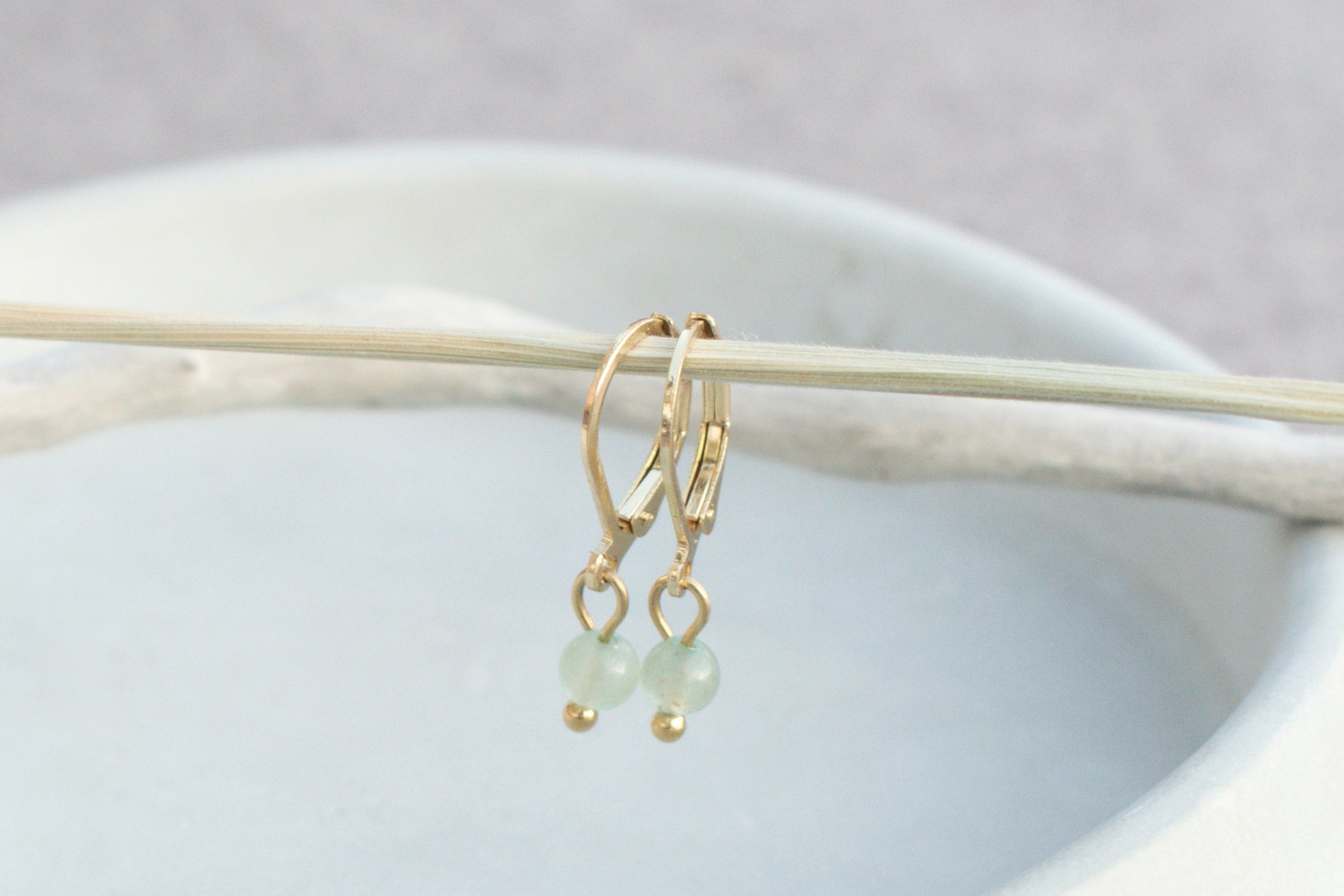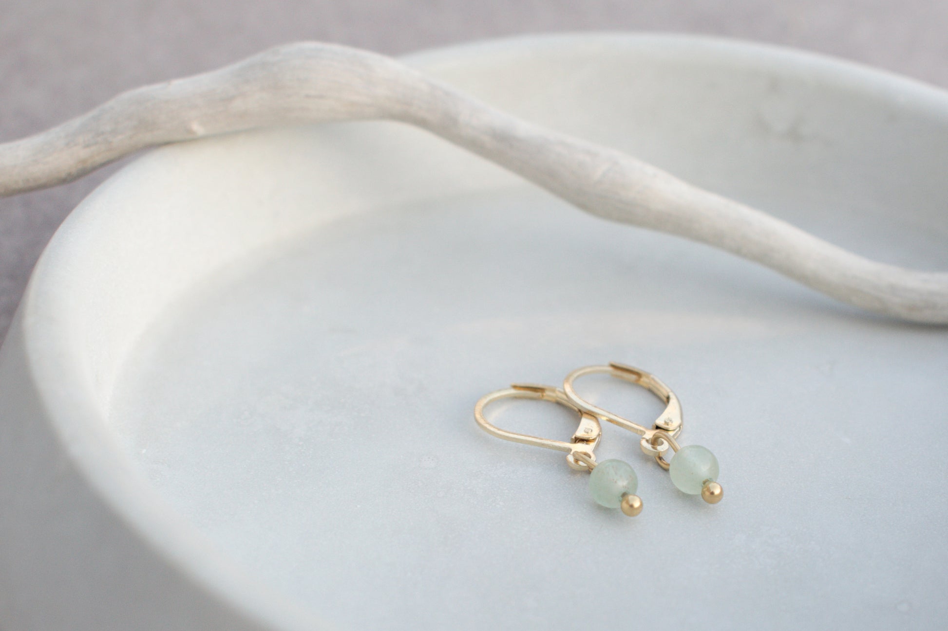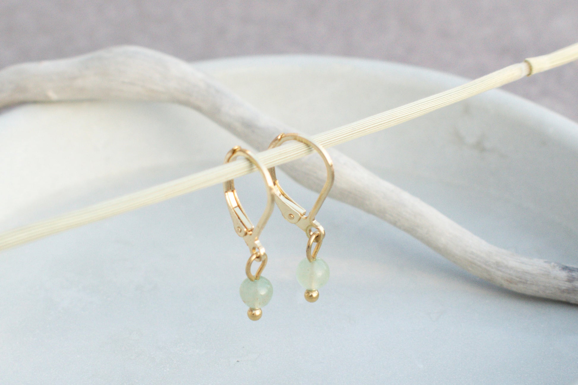 Gold grüne Hängeohrringe mit Aventurin – vergoldeter Edelstahl