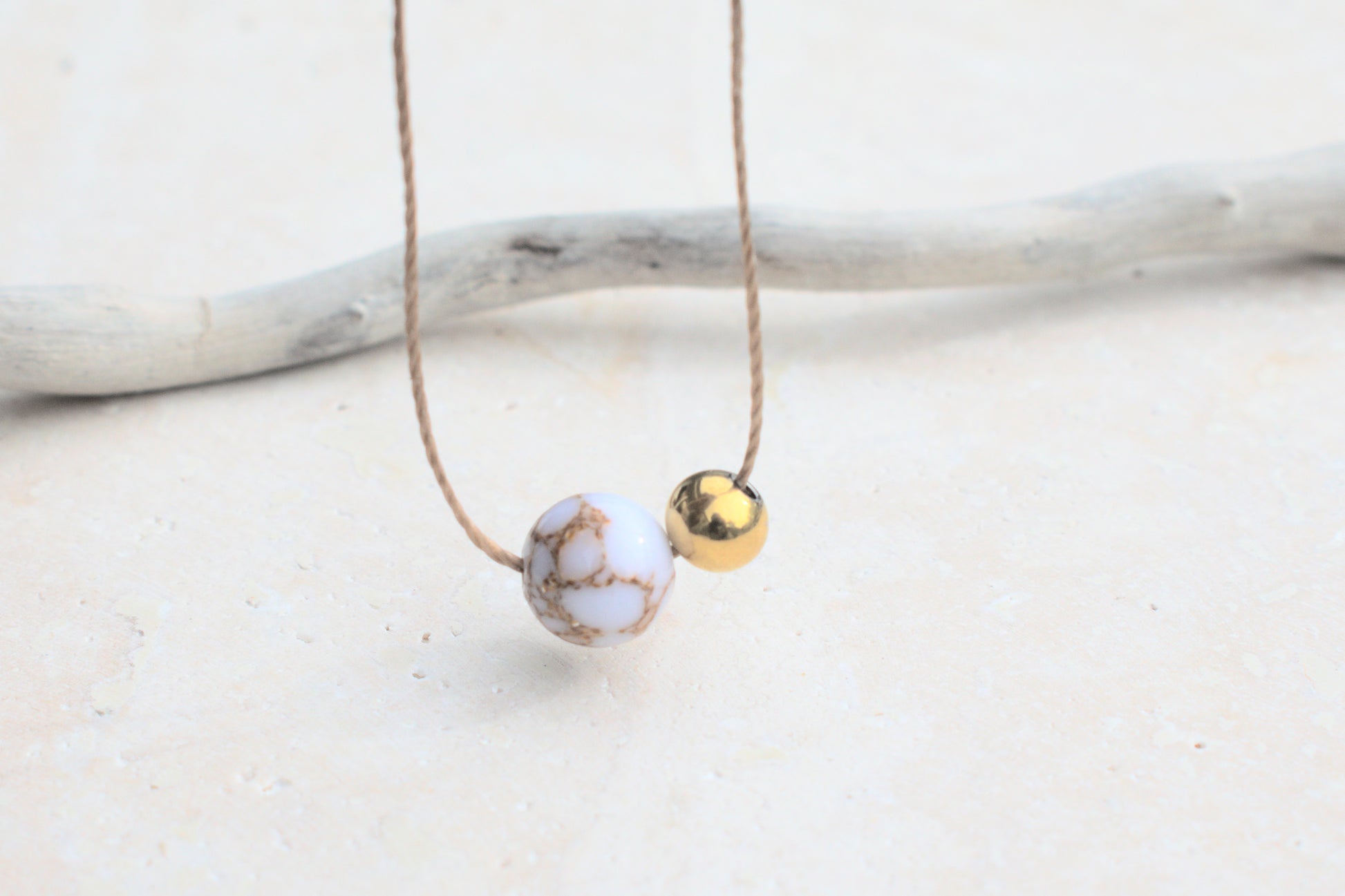 Material: Edelstahl, weiß-goldene Howlit Perlen