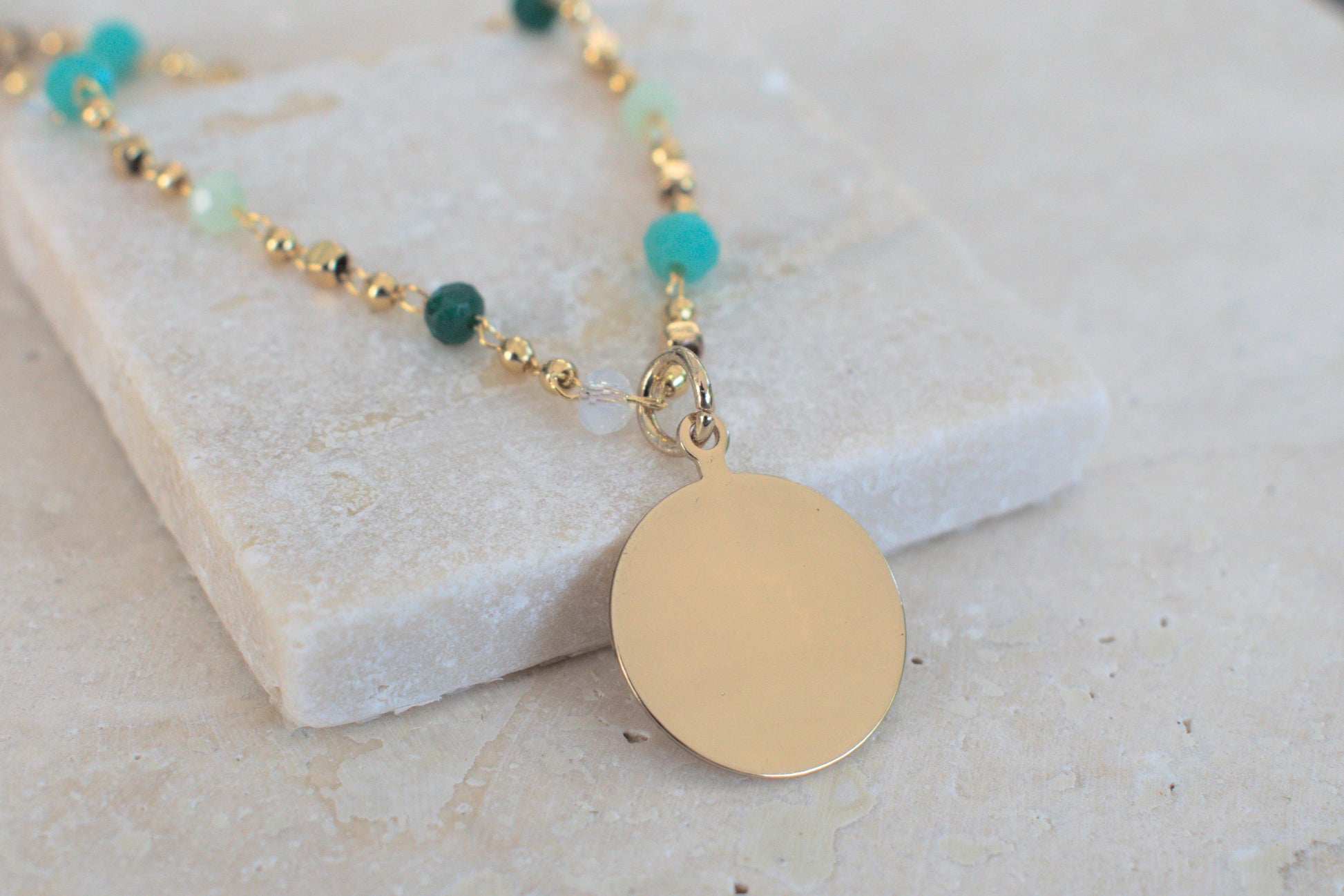 Goldene Kette mit farbintensiven Perlen und Plättchen Anhänger