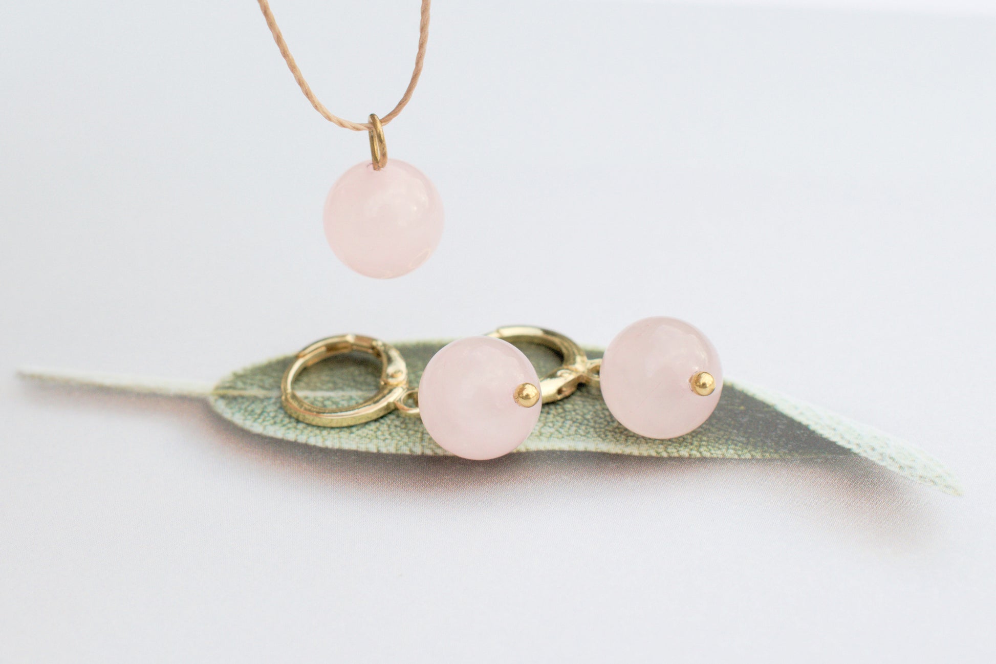 Handgefertigte Kette mit natürlichem Rosenquarz – Stein der Liebe, Hochzeitsschmuck
