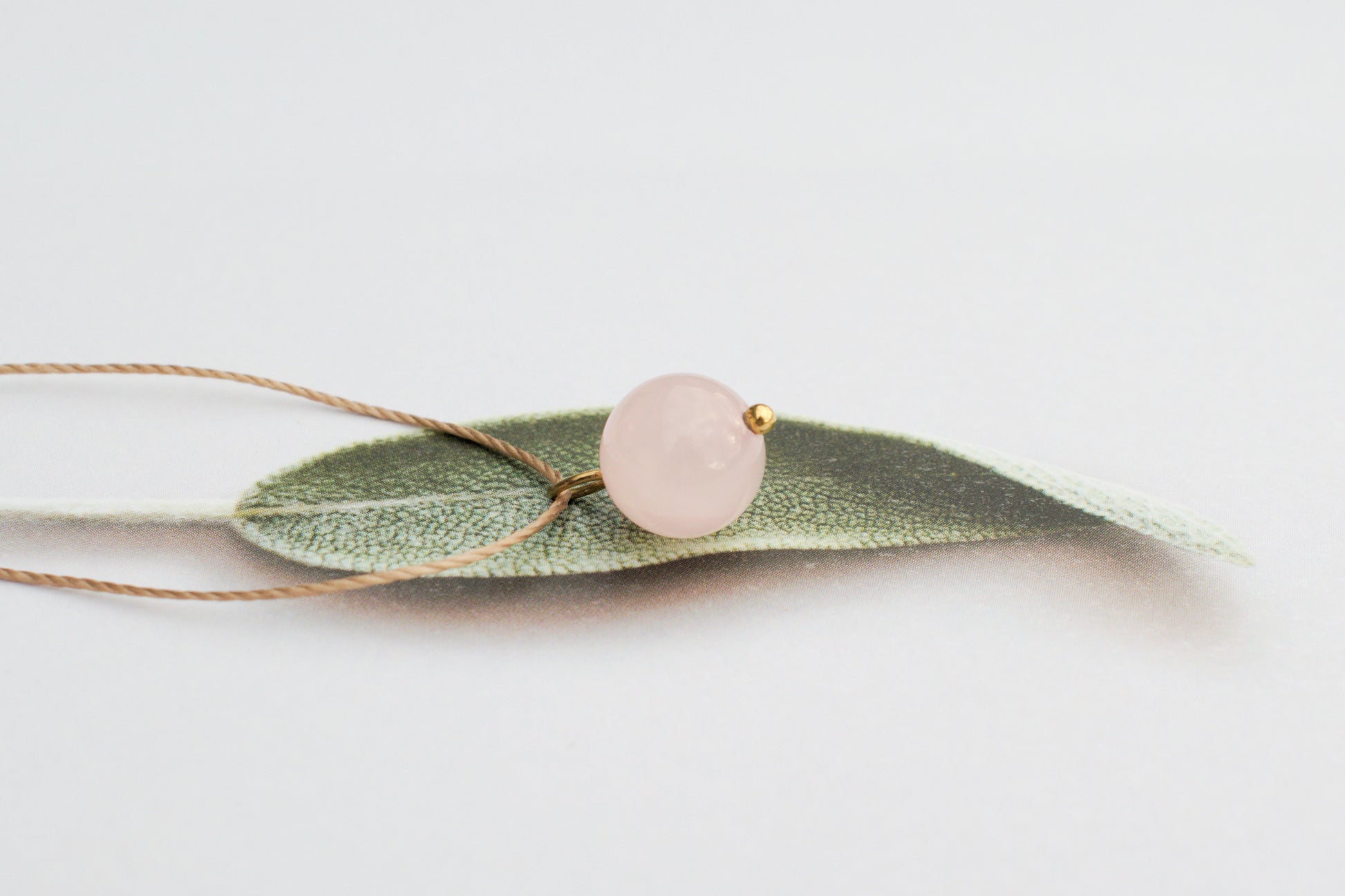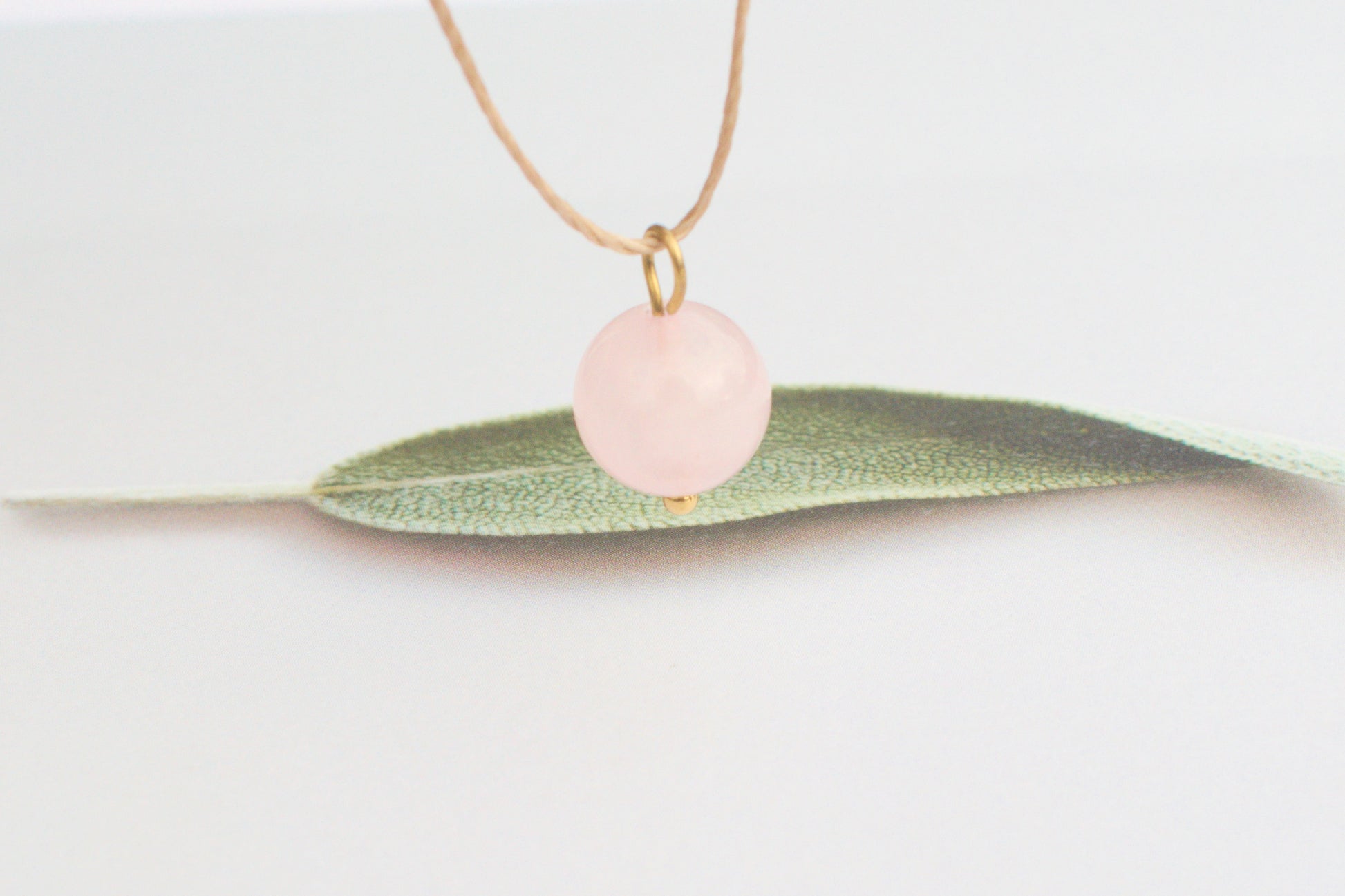Der warme Braunton des Bands harmoniert wunderschön mit dem zarten Rosa des Edelsteins und macht diese Kette zu einem sanften, romantischen Highlight – perfekt für Hochzeiten, Sommerfeste, Brautjungfern oder als liebevolles Geschenk.