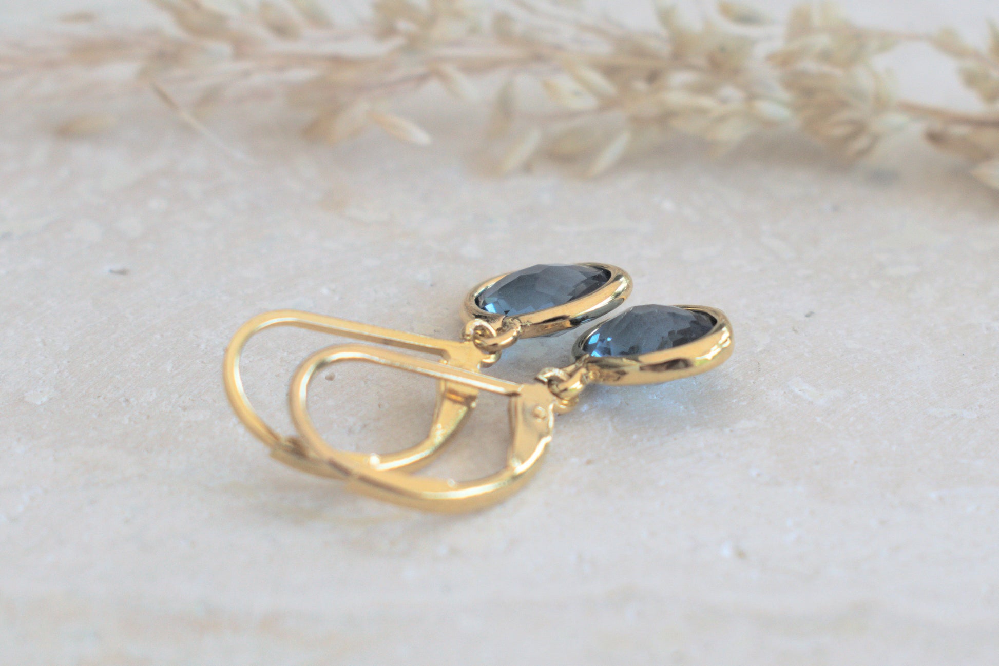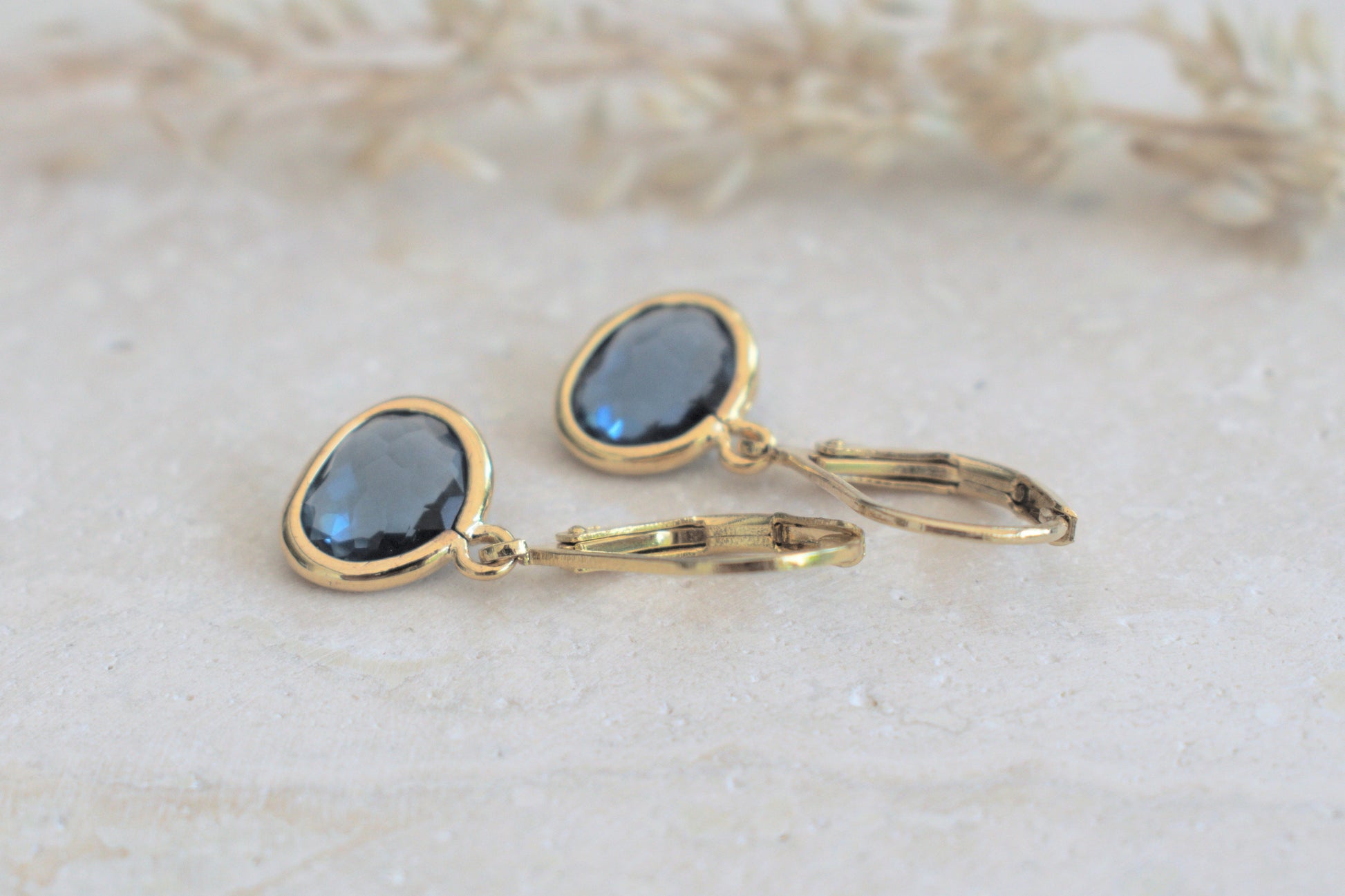 Eleganz trifft auf zeitlose Schönheit. Diese hängenden Ohrringe sind ein wahrer Blickfang. Der feine goldene Rahmen umschließt einen tiefblauen Glasstein, der im Licht schimmernd seine ganze Farbintensität entfaltet.