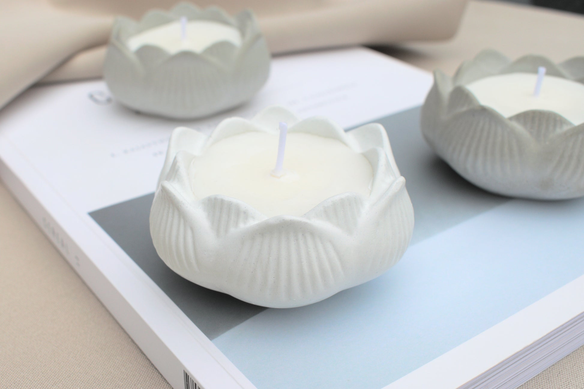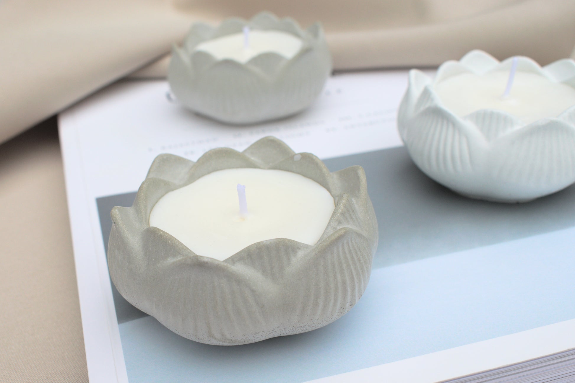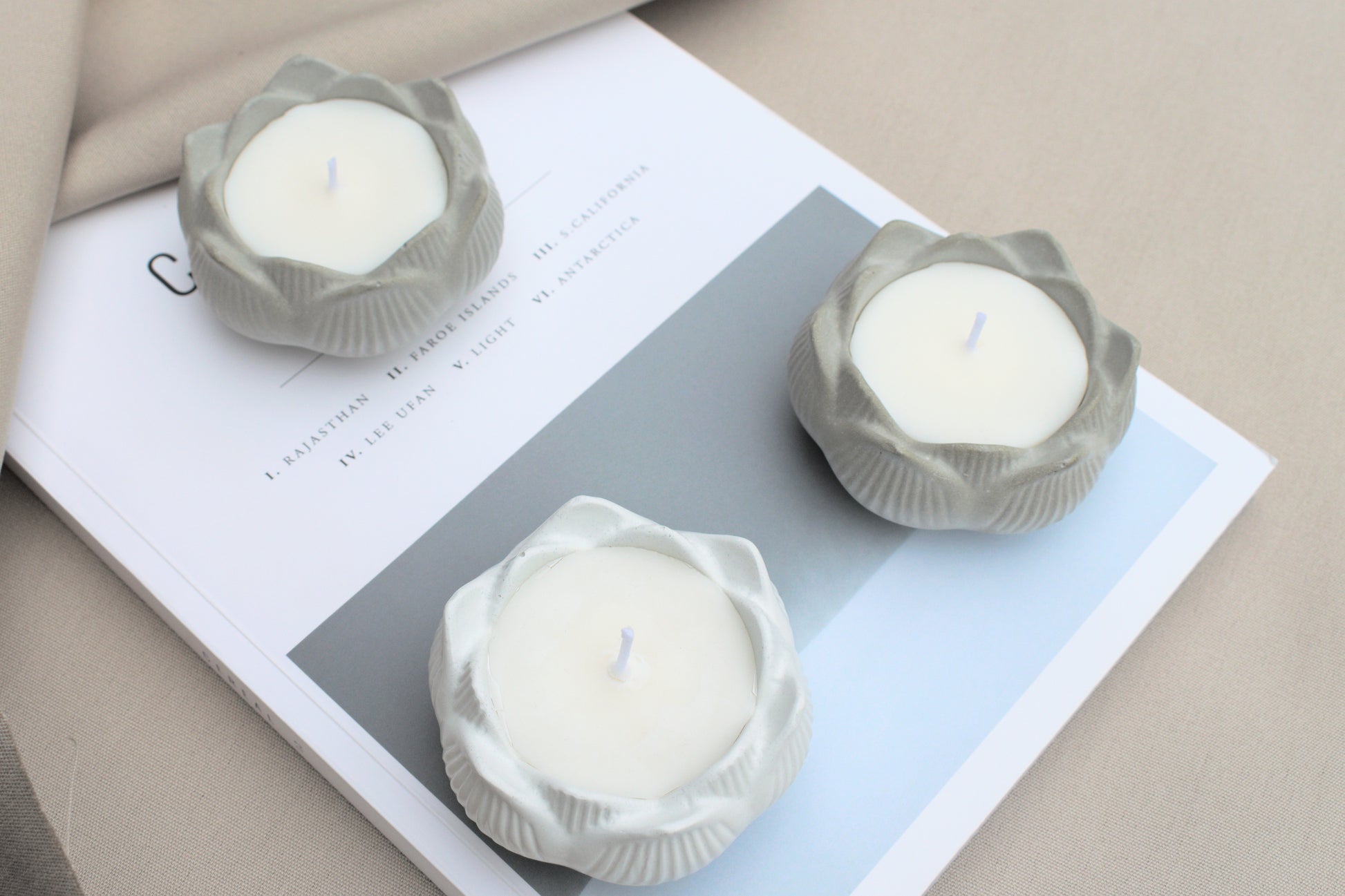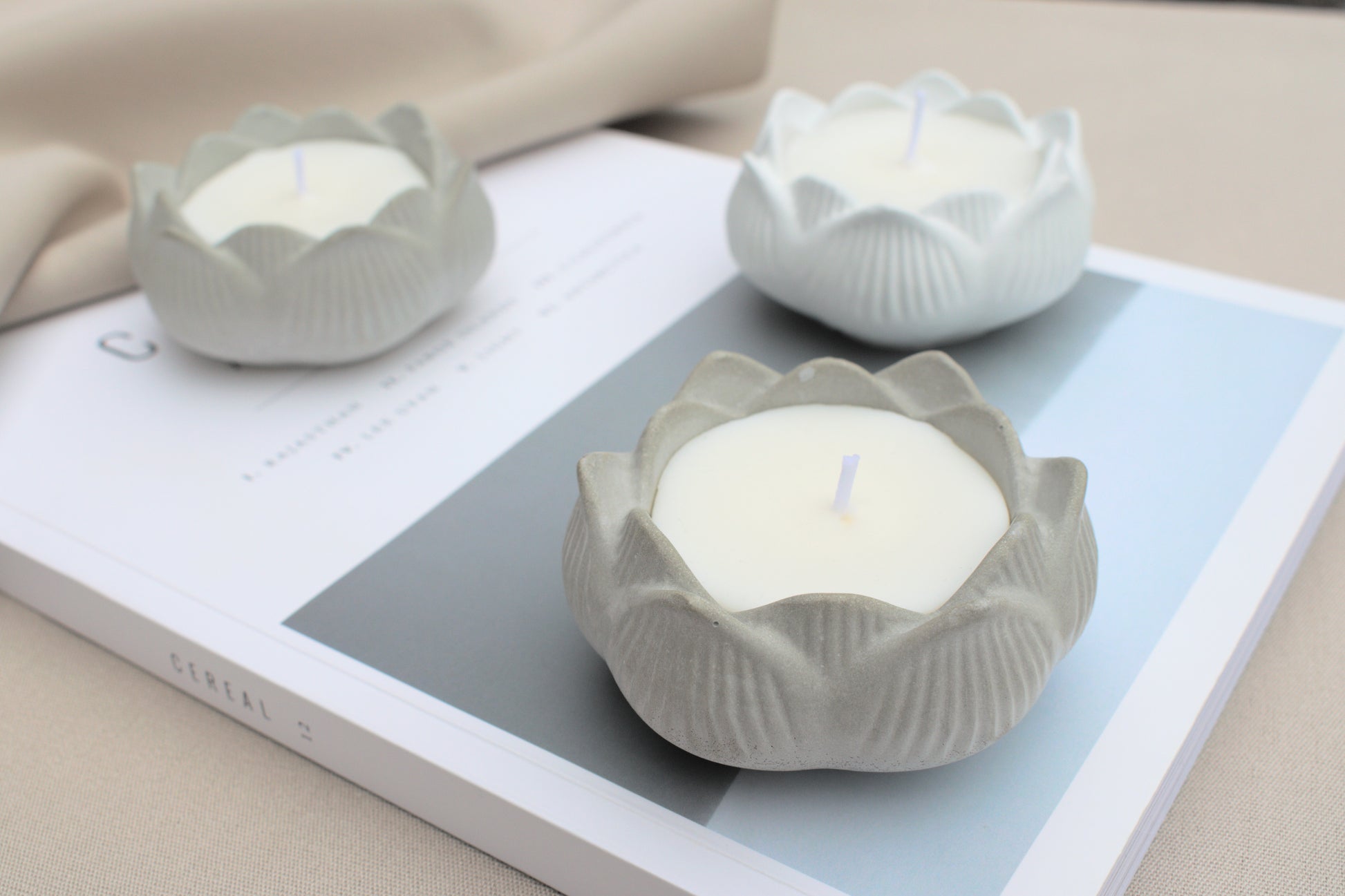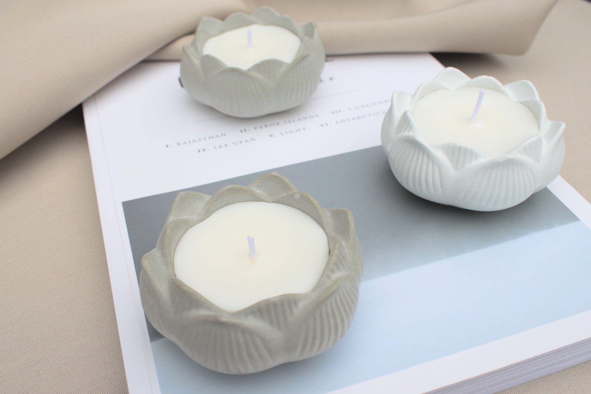Kerze aus Beton in Form einer Blume, der Lotusblüte