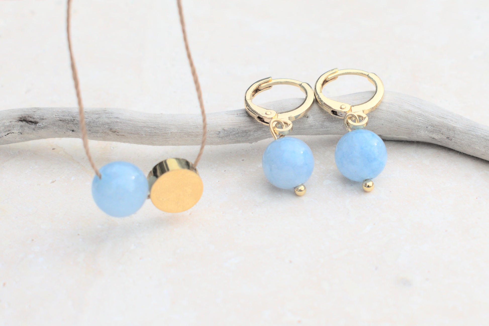 Der Aquamarin – bekannt für seine beruhigende Ausstrahlung und seine sanft blaue Farbgebung bringt Leichtigkeit und Klarheit ins Design. Die goldene Edelstahlperle setzt dazu einen edlen, warmen Kontrast und verleiht dem Schmuckstück einen modernen, minimalistischen Charakter. Dazu passende Ohrringe findest Du im Shop.
