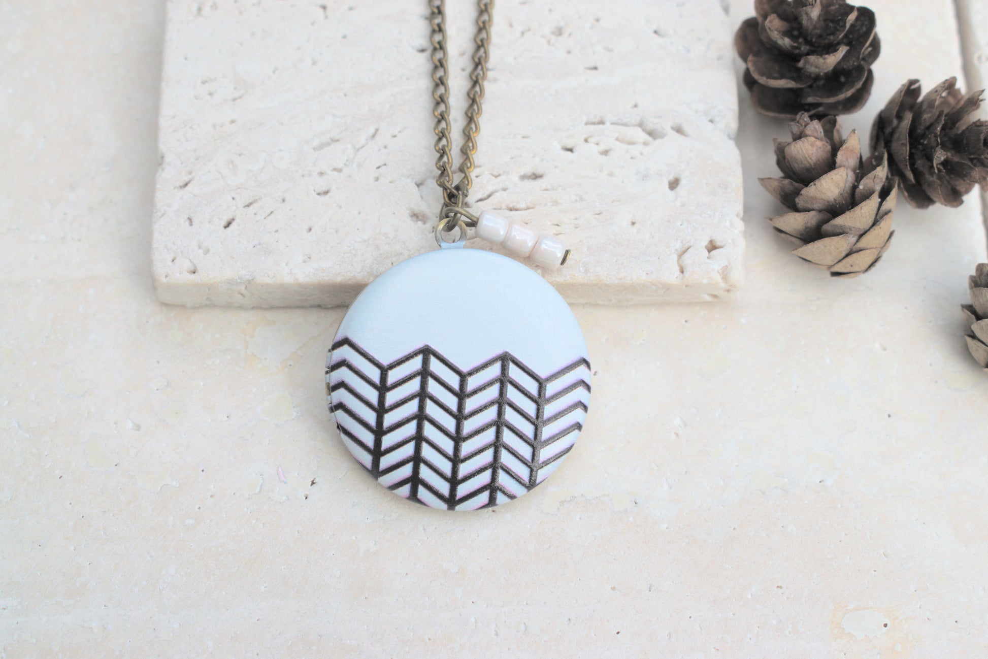 Ein passendes Photomedaillon im selben Stil findest du ebenfalls im Shop – ideal, um dein Schmuck-Ensemble zu vervollständigen oder als stilvolles Geschenkset. Das Zusammenspiel von Cabochon, geometrischem Design und bronzefarbenem Metall macht diese Ohrringe zu einem eleganten, aber unaufdringlichen Blickfang.