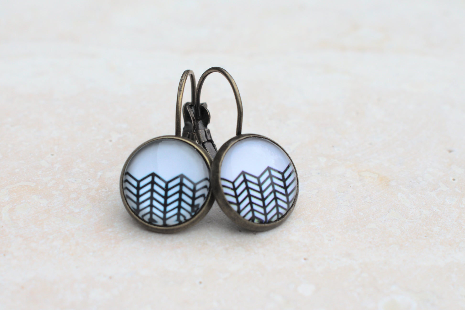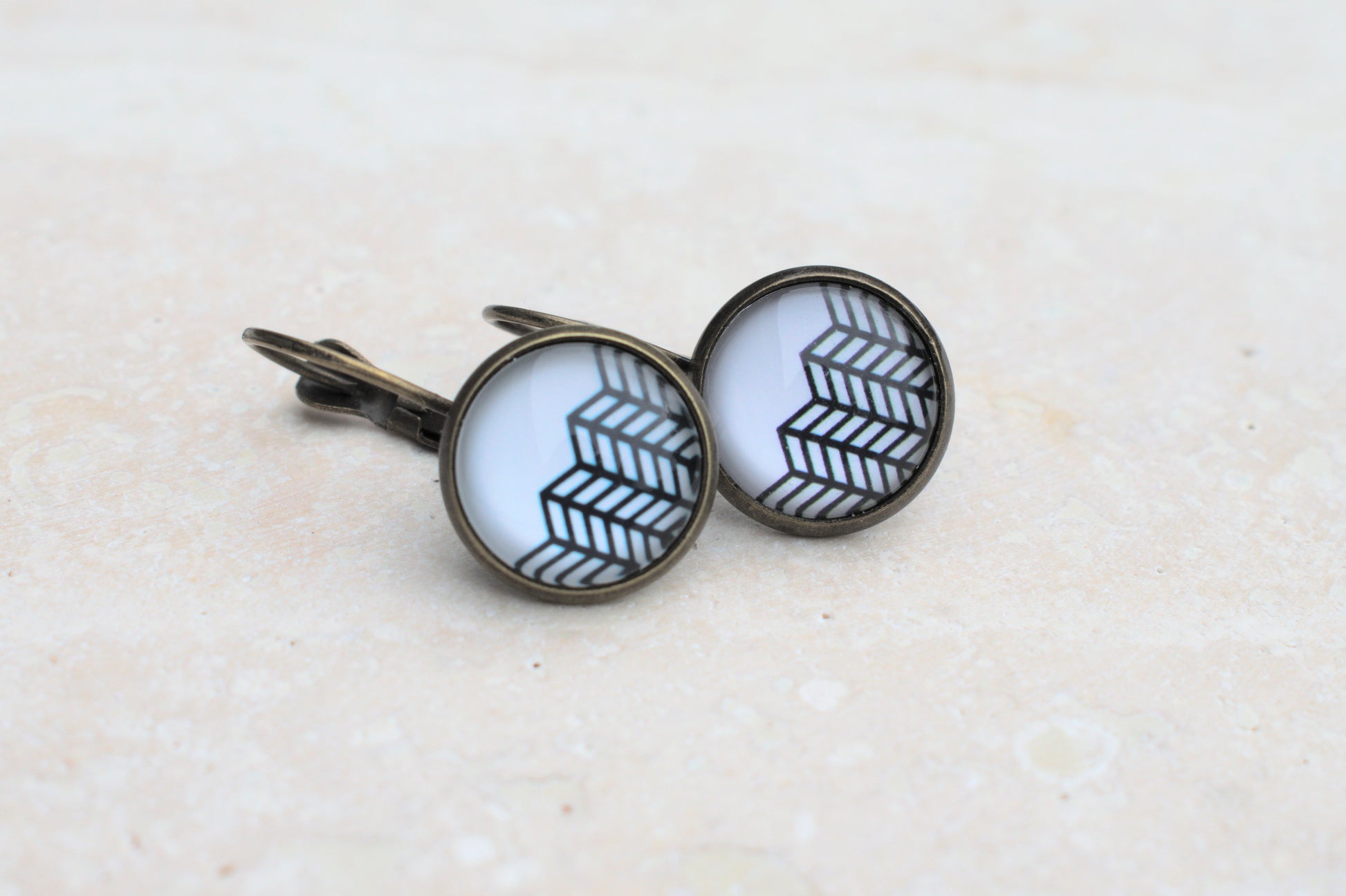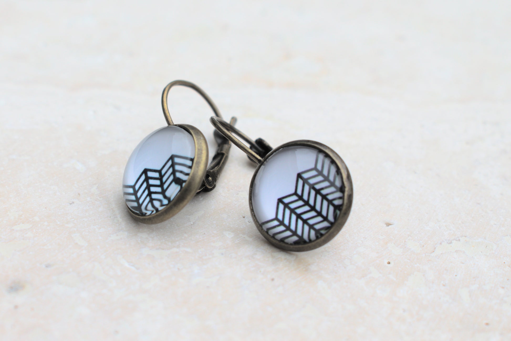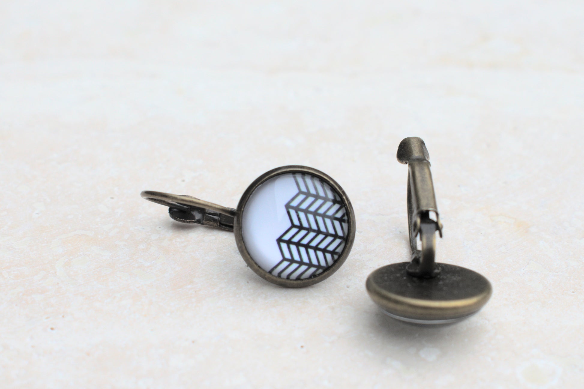 Die warme Bronzefassung ergänzt das reduzierte Motiv harmonisch und verleiht den Ohrringen einen dezenten Vintage-Look. Durch ihre angenehme Größe sind sie sowohl im Alltag als auch zu besonderen Anlässen tragbar – zurückhaltend, aber dennoch besonders.