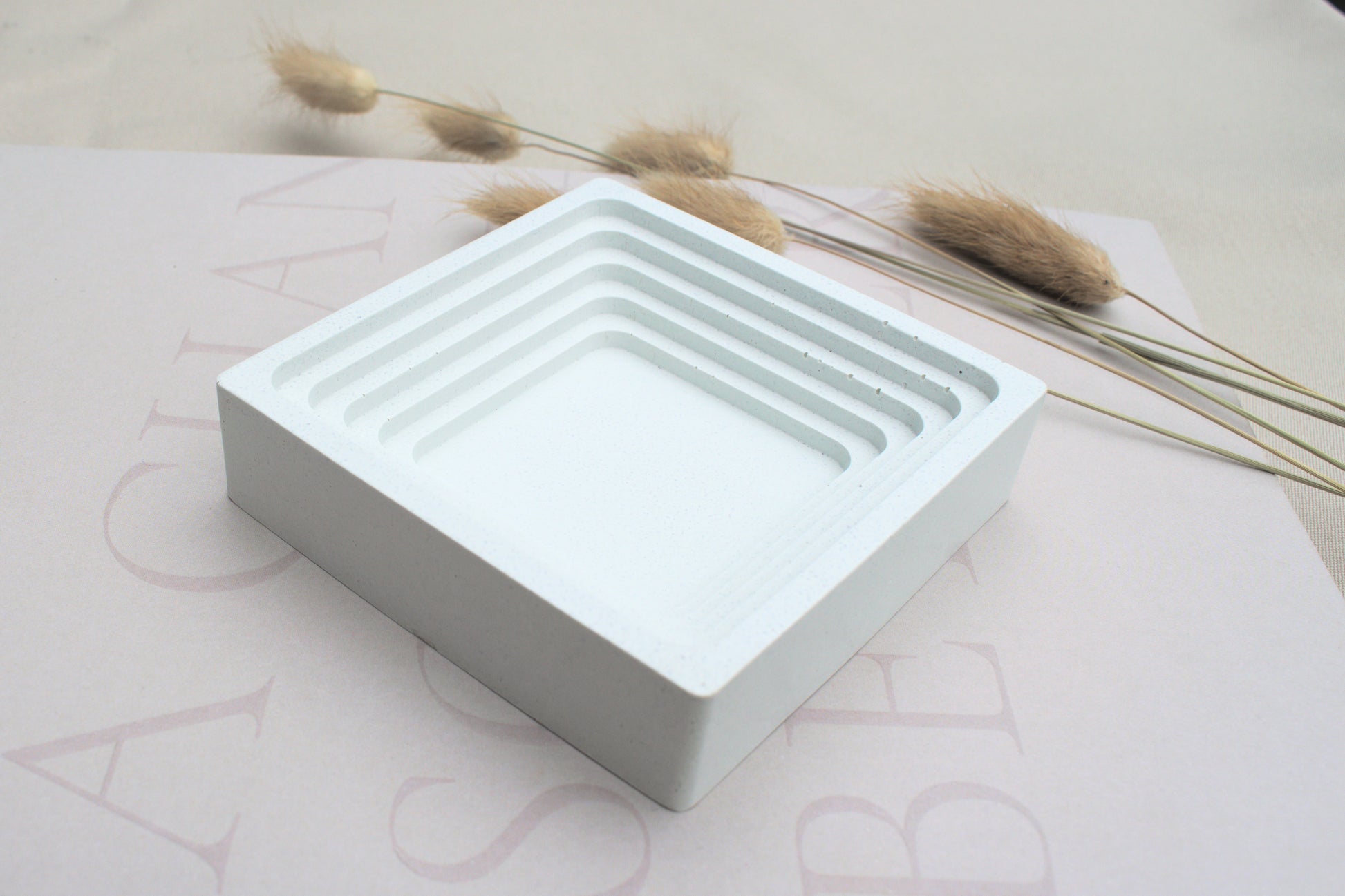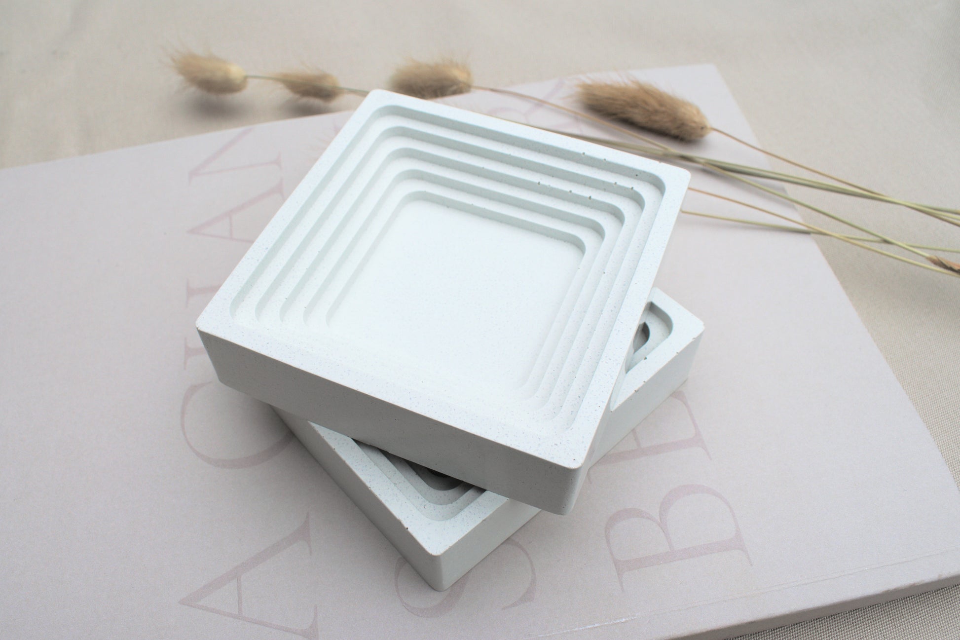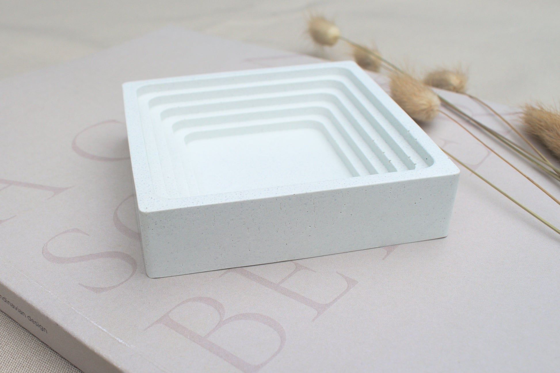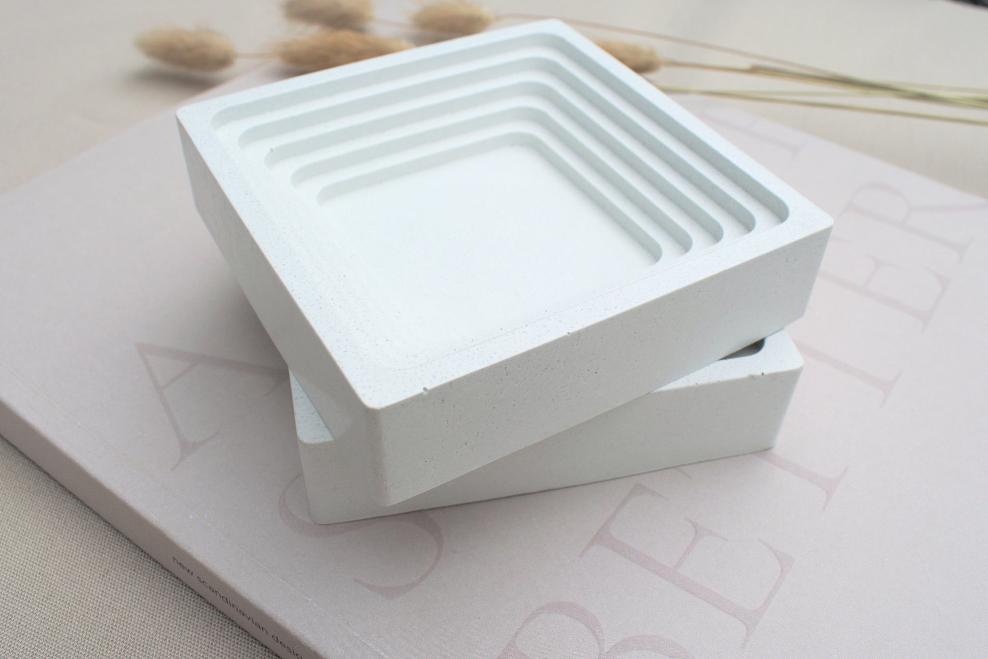Weiße quadratische Dekoschale oder weiße Schmuckschale aus Beton