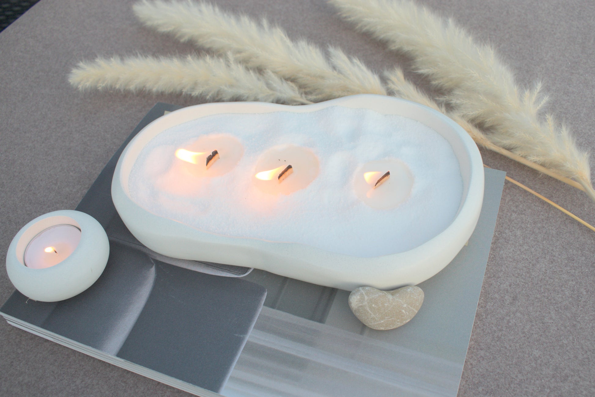 Du kannst auch super schön Kerzensand in die Schale füllen, sieht wirklich toll aus.