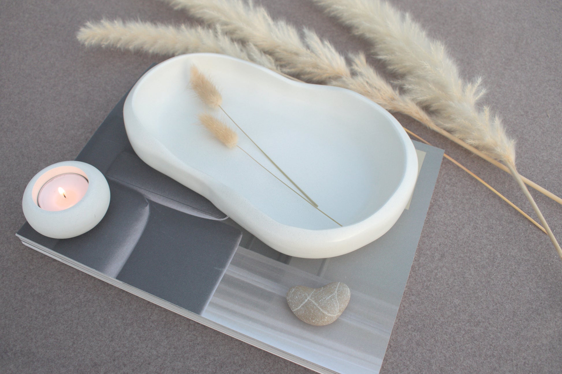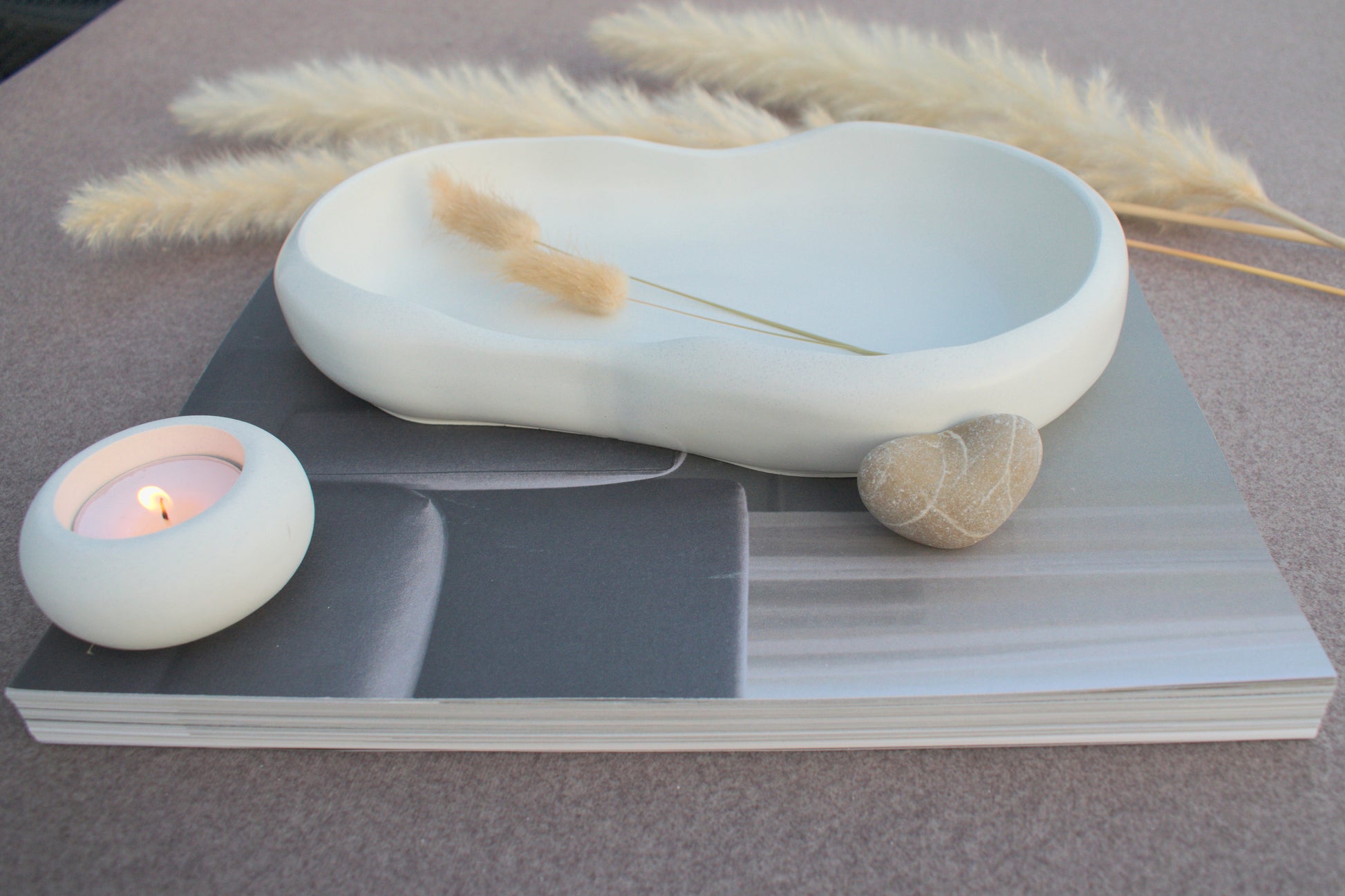 Wavy Schale aus weißem Beton – handgemachte Bowl, Schmuckschale oder moderne Schlüsselschale für Dein Skandi Home