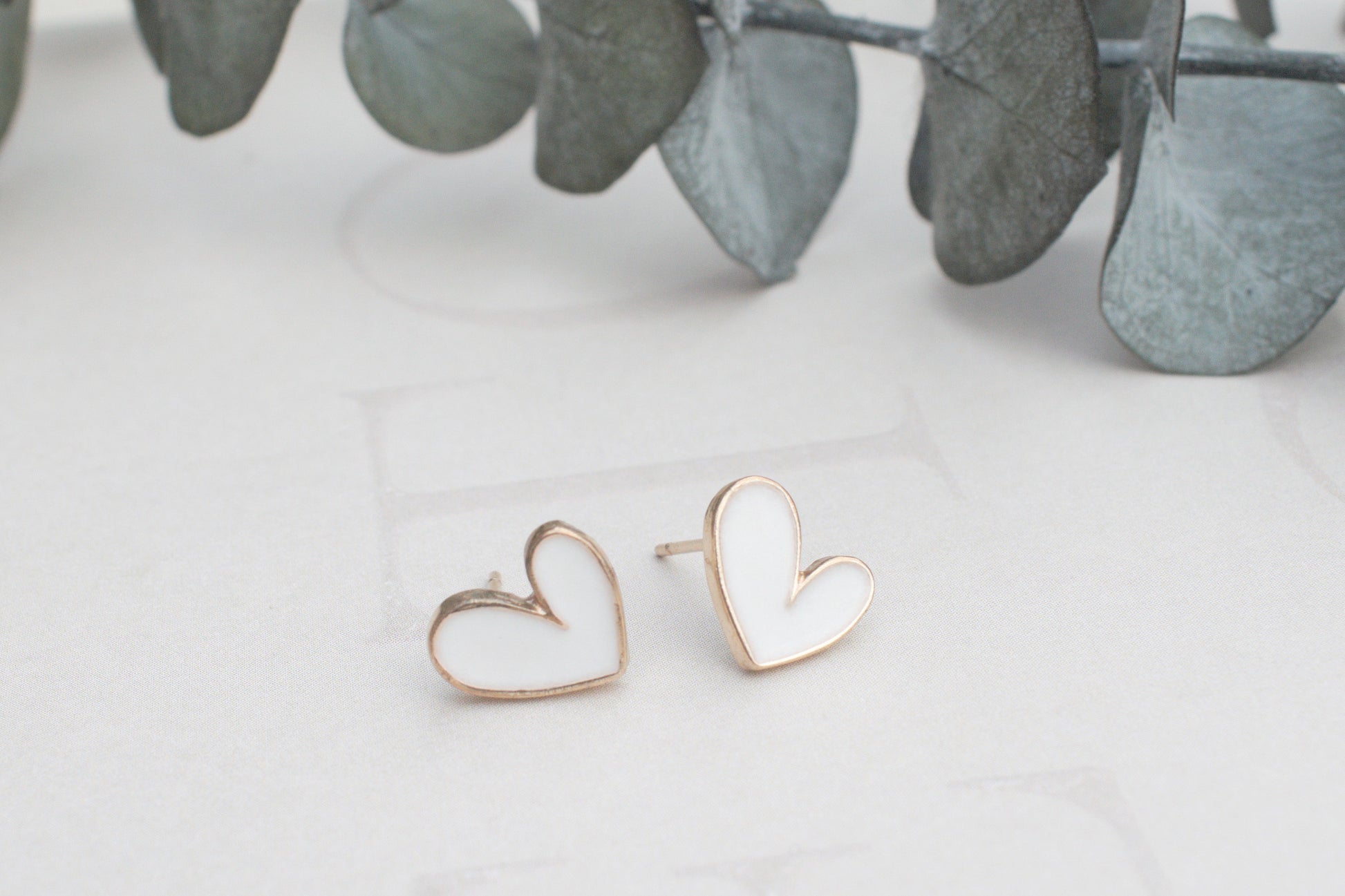 Weiße Herz Ohrstecker mit goldenem Rahmen, liebevolle Ohrringe, romantischer Schmuck, Geschenk für Sie