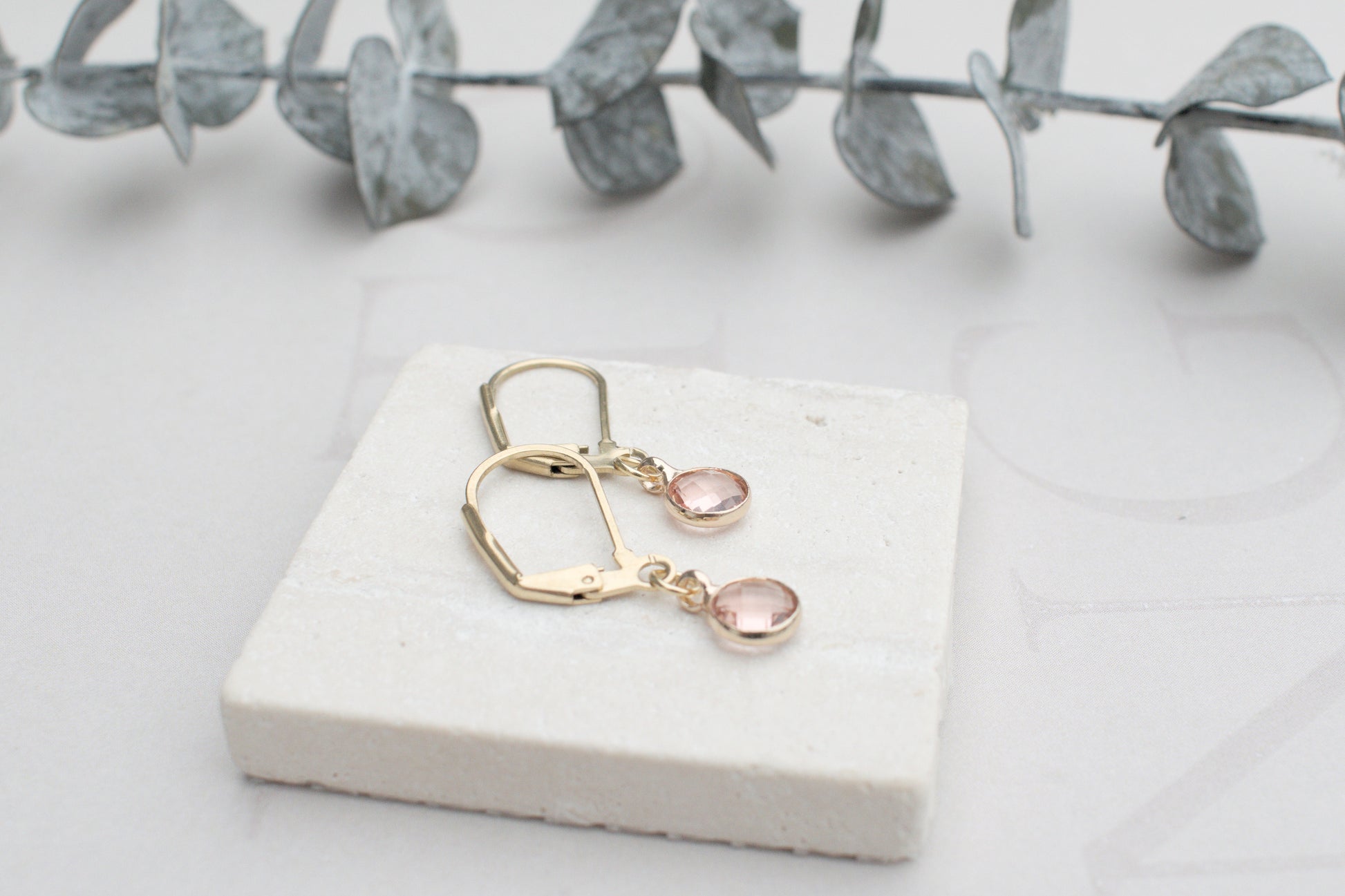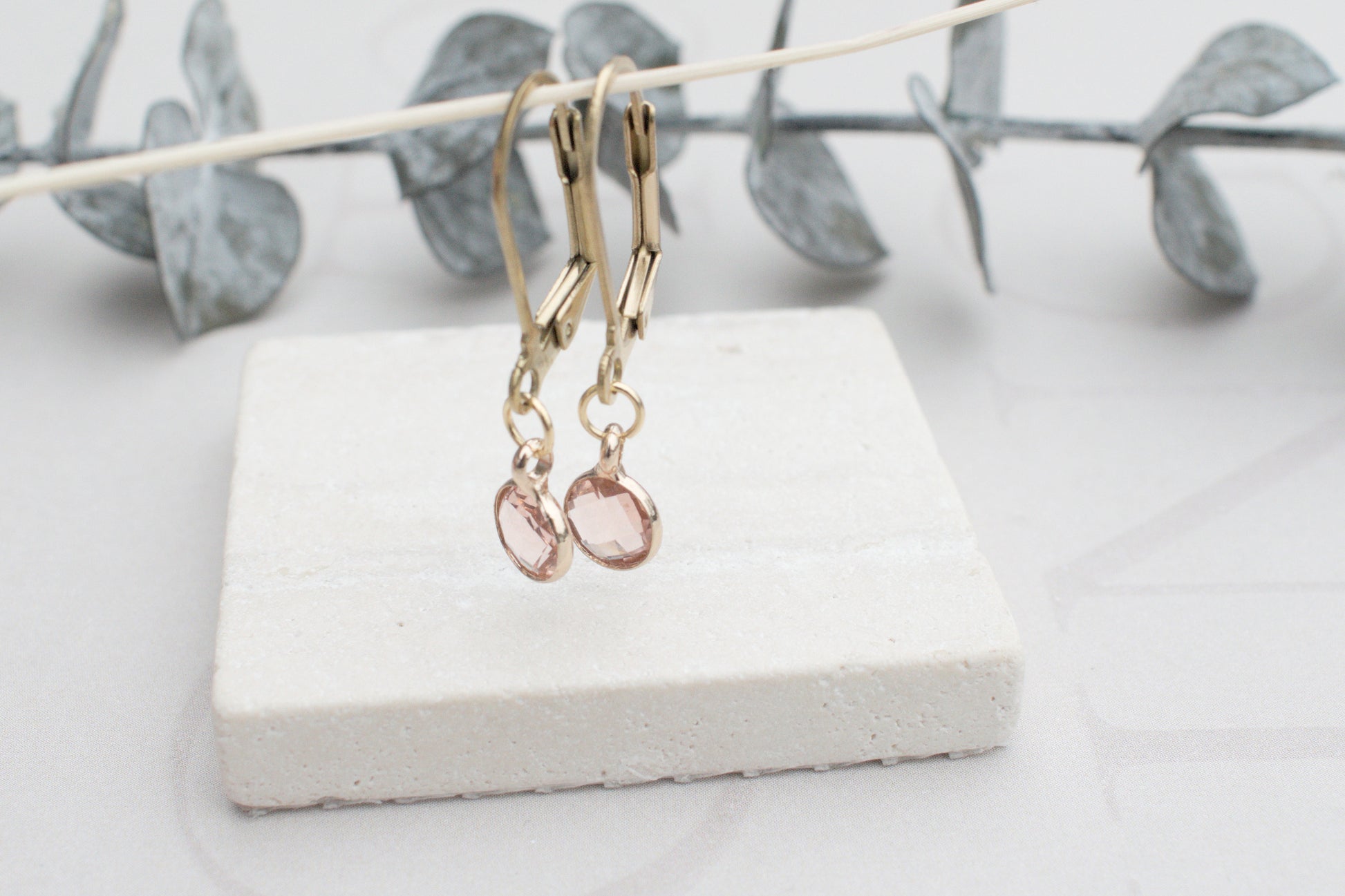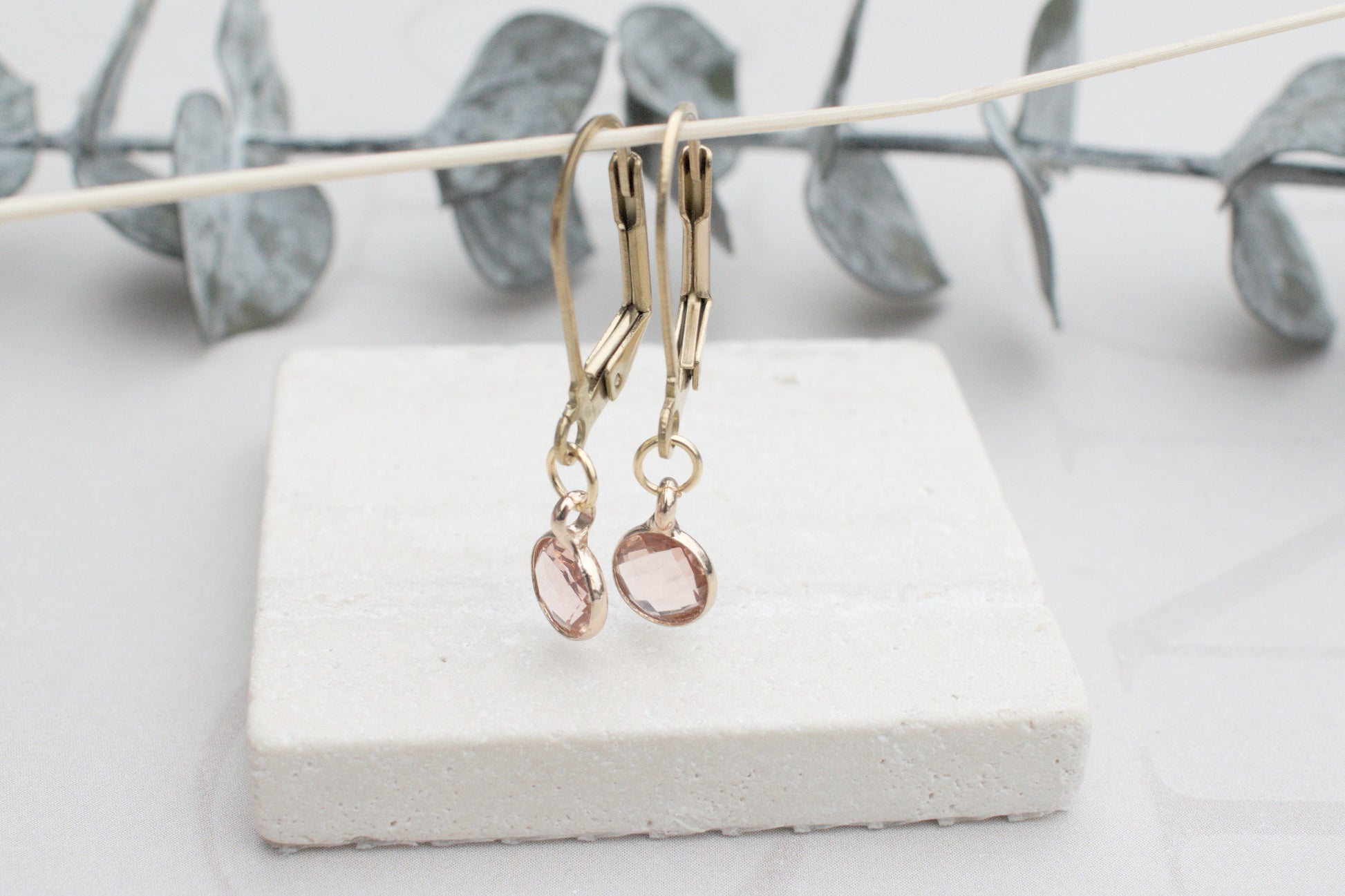 Zarte minimalistische goldenen Ohrringe mit elegantem rosa Anhängern.