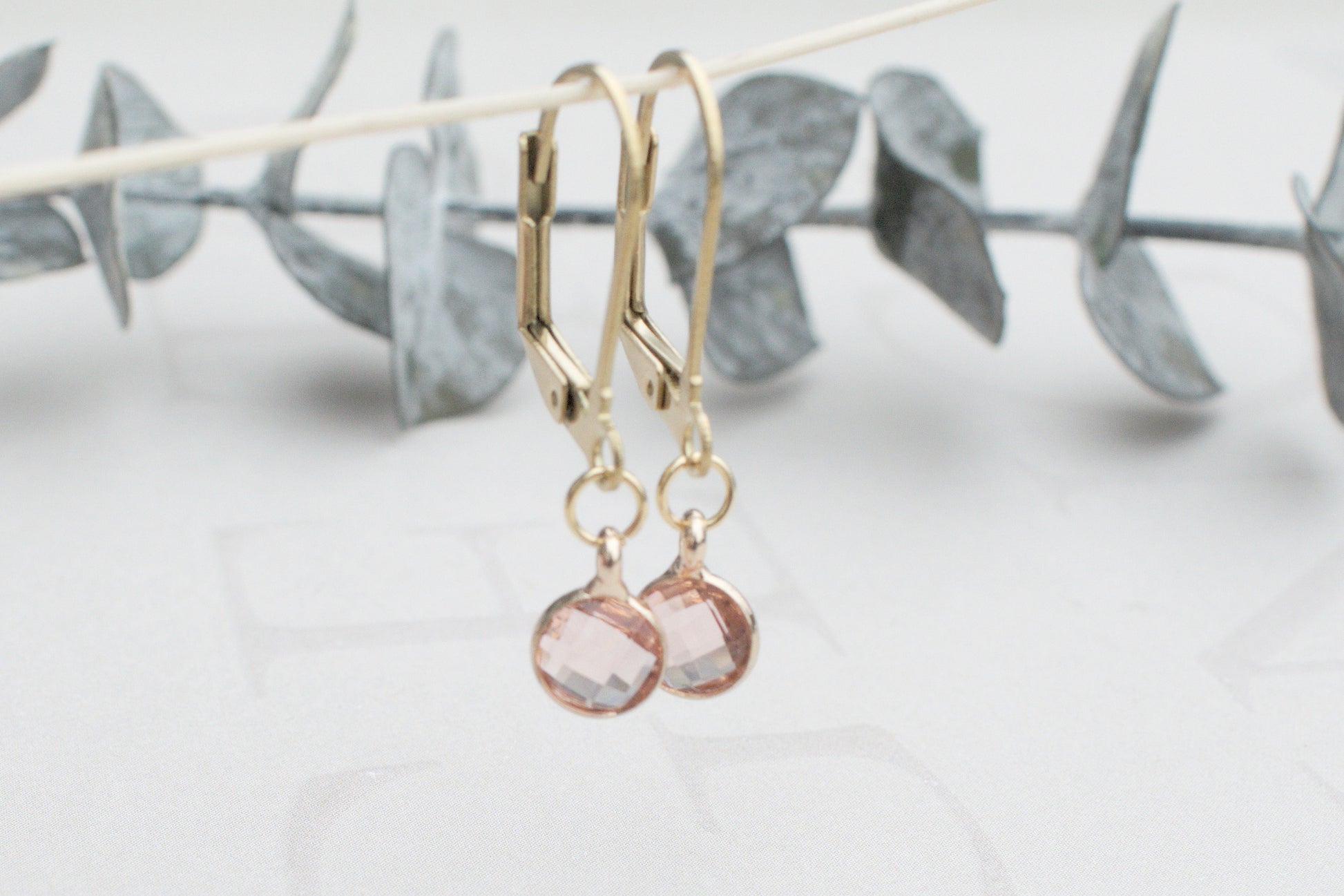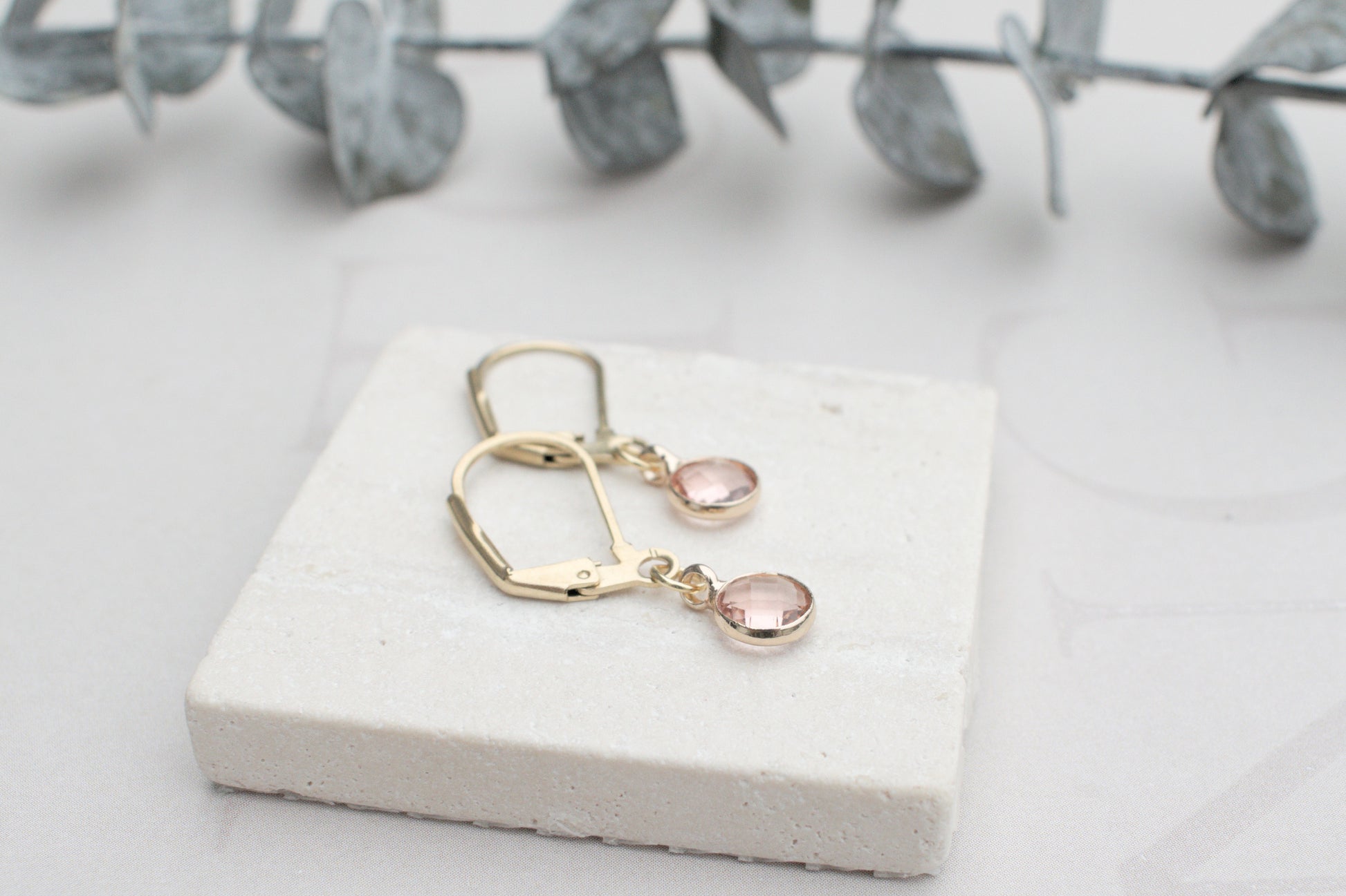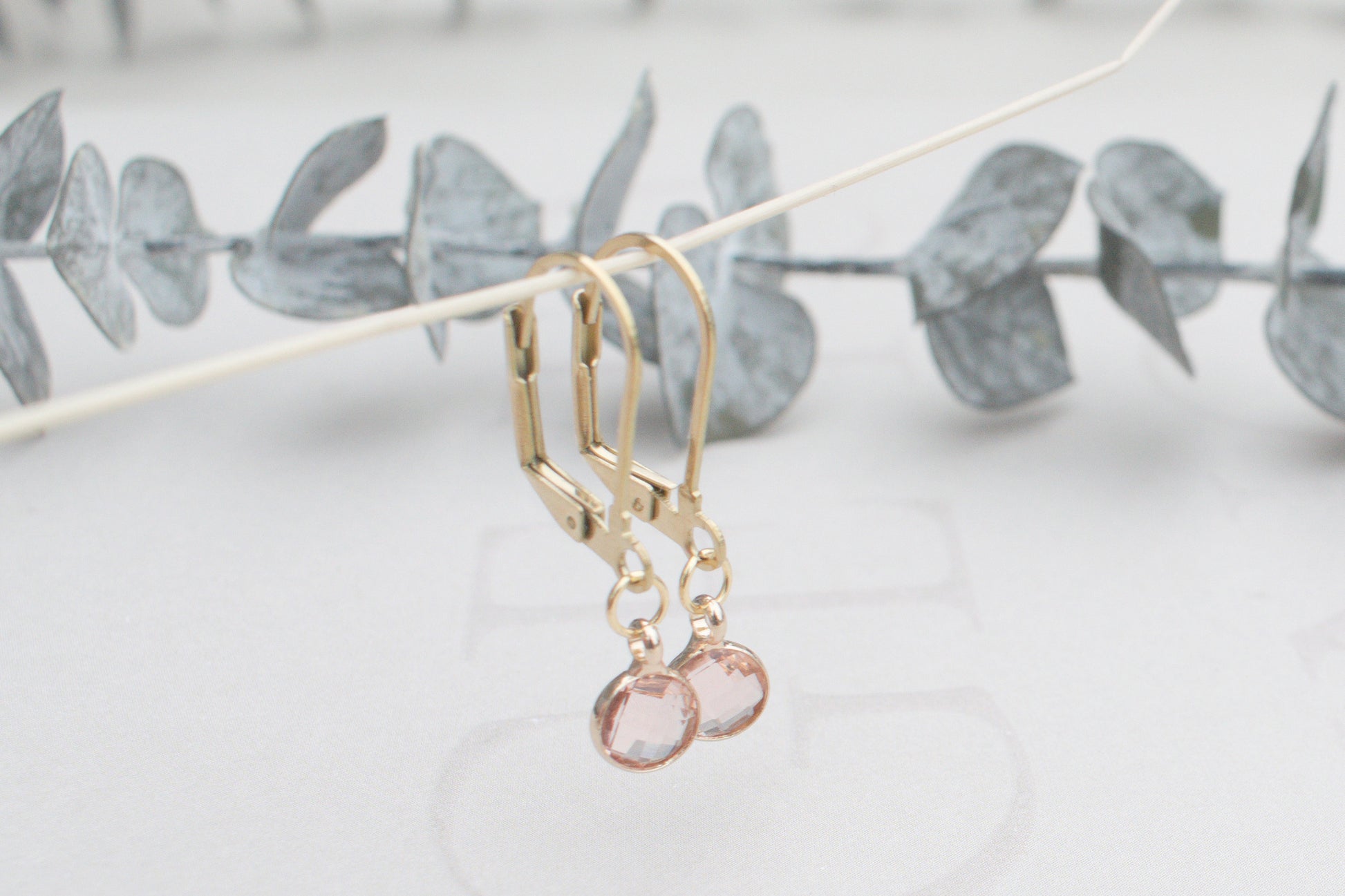 Zarte minimalistische goldenen Ohrringe mit elegantem rosa Anhängern.