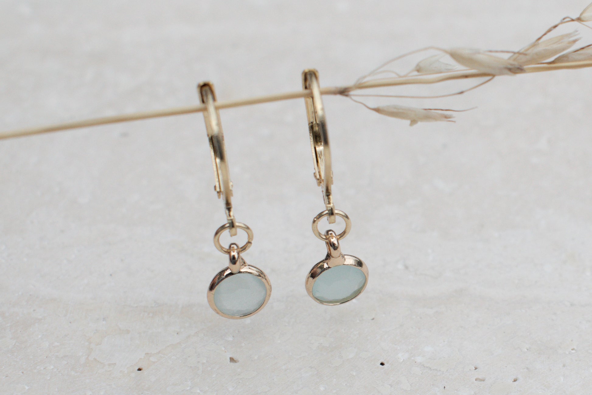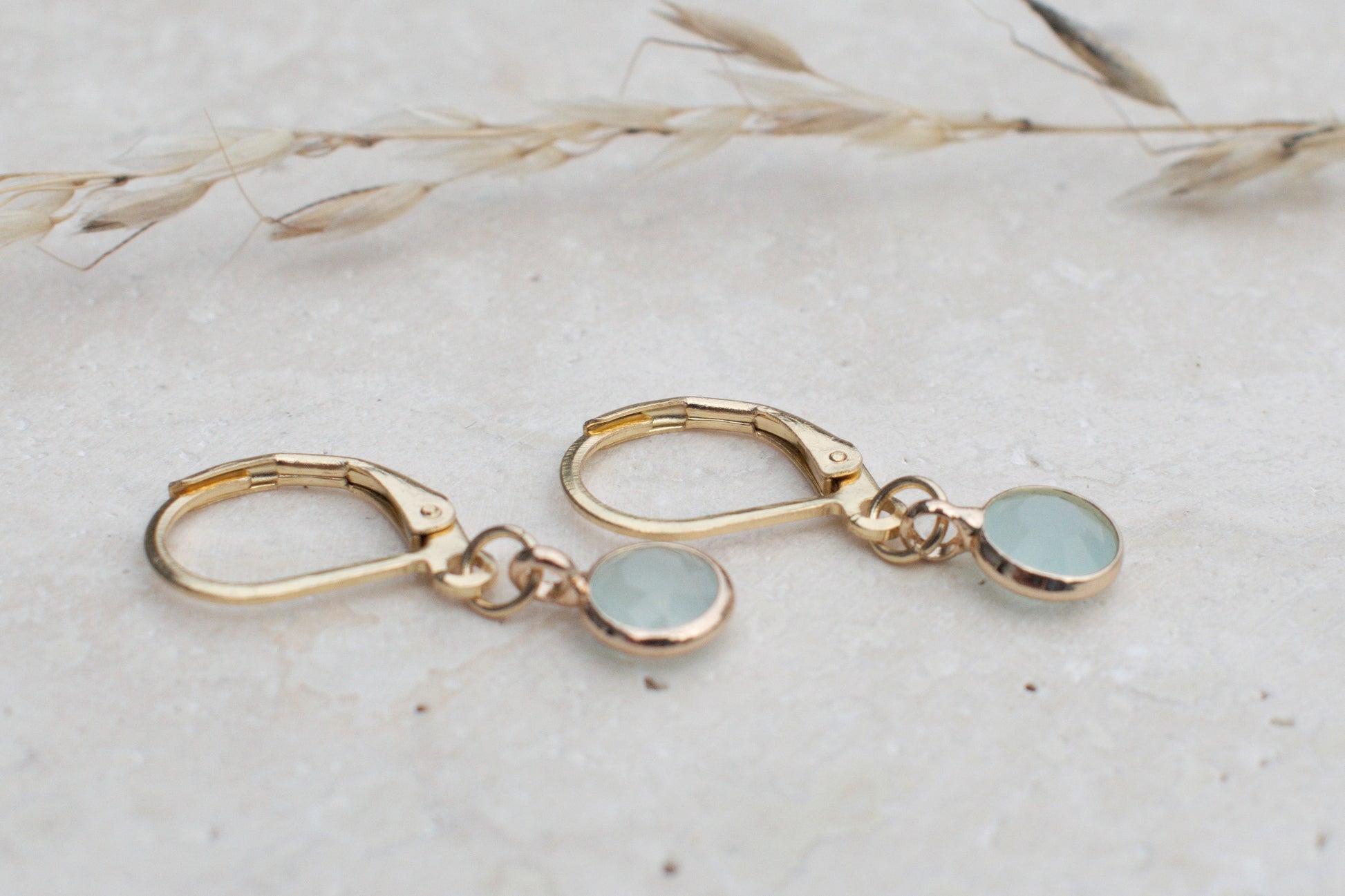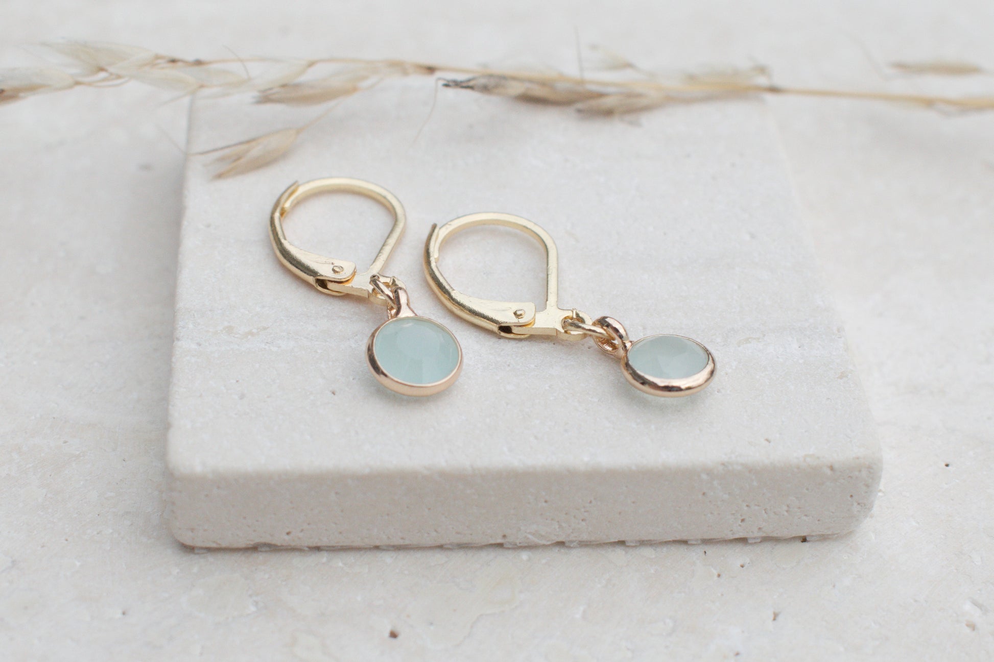 Zarte minimalistische goldenen Ohrringe mit elegantem türkisen Anhängern